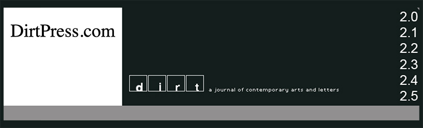 It is with great pride we offer this body of contributed work as our final issue. Issue 2.5 marks the end of our fourth year of producing Dirt and the close of our second volume of issues. As many of you are aware, Dirt has been an all-volunteer labor of love since its inception in 2002. Started on a whim by a collective of artists and writers, we never imagined during that first brainstorming session the depth and breadth of the work we’ve been fortunate to have featured in these twelve issues. As stated in our mission, we strove to find some sort of permanence in an ephemeral medium, and without your support and enthusiasm over the years, we would have never come this far.